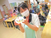 入居者さまにも自由に描いていただいたのですが、青いチョコペンで描いて「さんまができた!」と話されていました!(^^)!