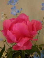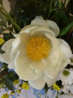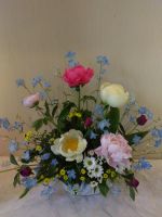 今回は芍薬がメインになっています。牡丹とお花が似ていますが大きな花びらがゴージャスな感じです。花言葉は「恥じらい」「はにかみ」で夕方になると花を閉じる事からきているようです。