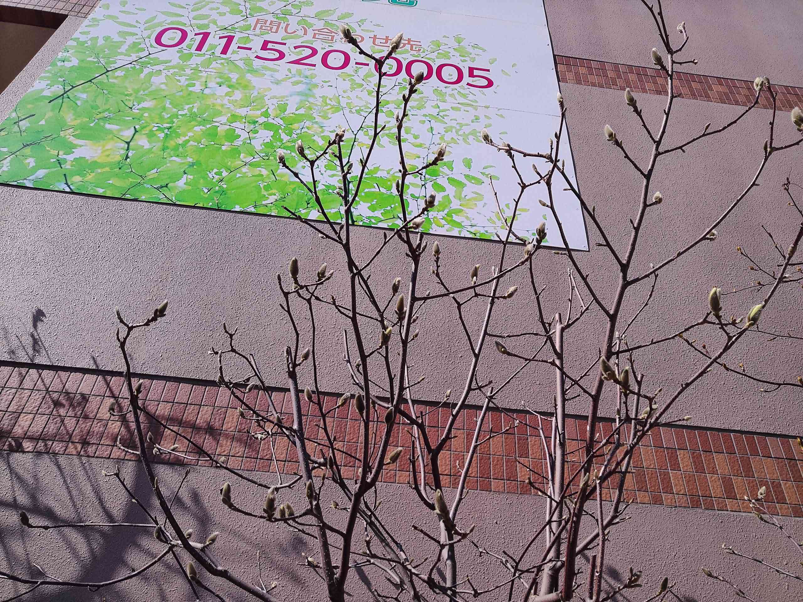 施設出入口にある木(何の木なのか忘れました笑)にもツボミが・・・開花が待ち遠しい!