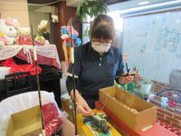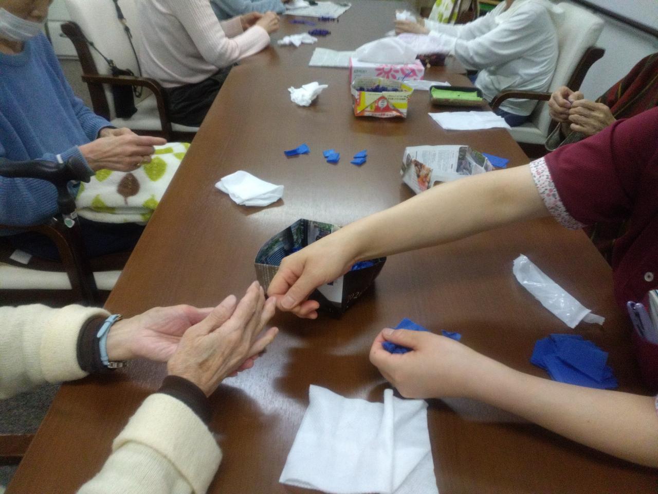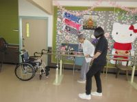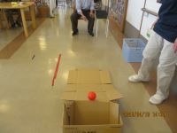 今日は、運動レクで『ボール転がしゲーム』をしました。箱に入れば得点が入ります。ボールの色によって得点が違います。たすと2000点以上の方、500点以下の方と色々です。女性が強いと思ったらなんと1位は男性の方!投げる力がちょうどいい!するする入ります。拍手をもらって嬉しそうにされていました(^-^)