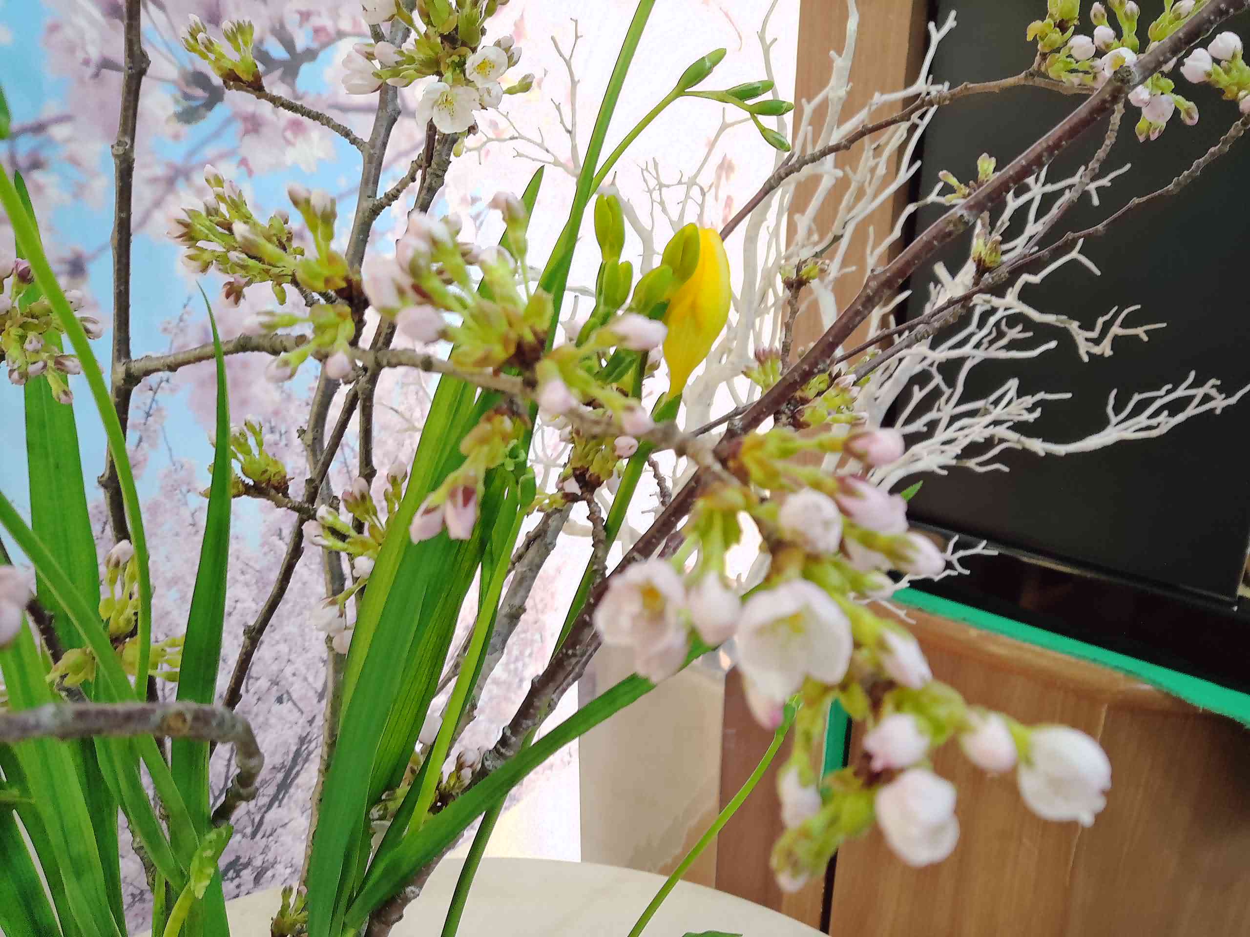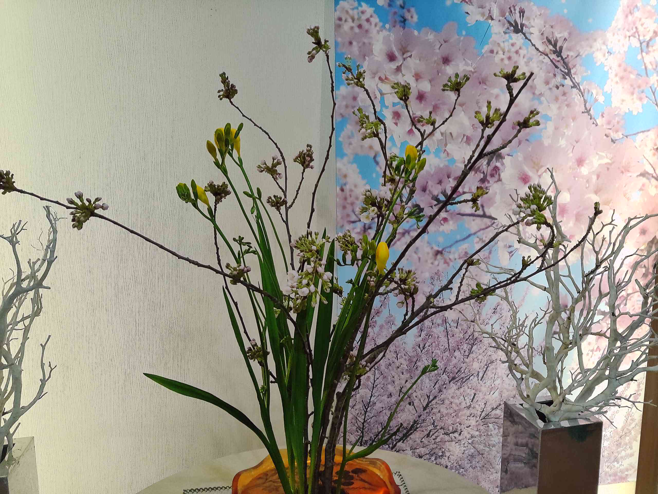 エントランスのお花ですが、椿が満開になる前に残念な事に枯れてしまい・・別のお花に交換となりました。