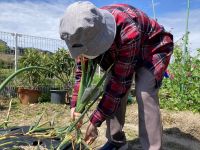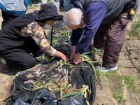 「こりゃ、大きい玉ねぎじゃ!抜けんよ」と力いっぱい引っ張ります