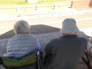 頑張って歩いたら疲れたのでベンチで休憩中です。
