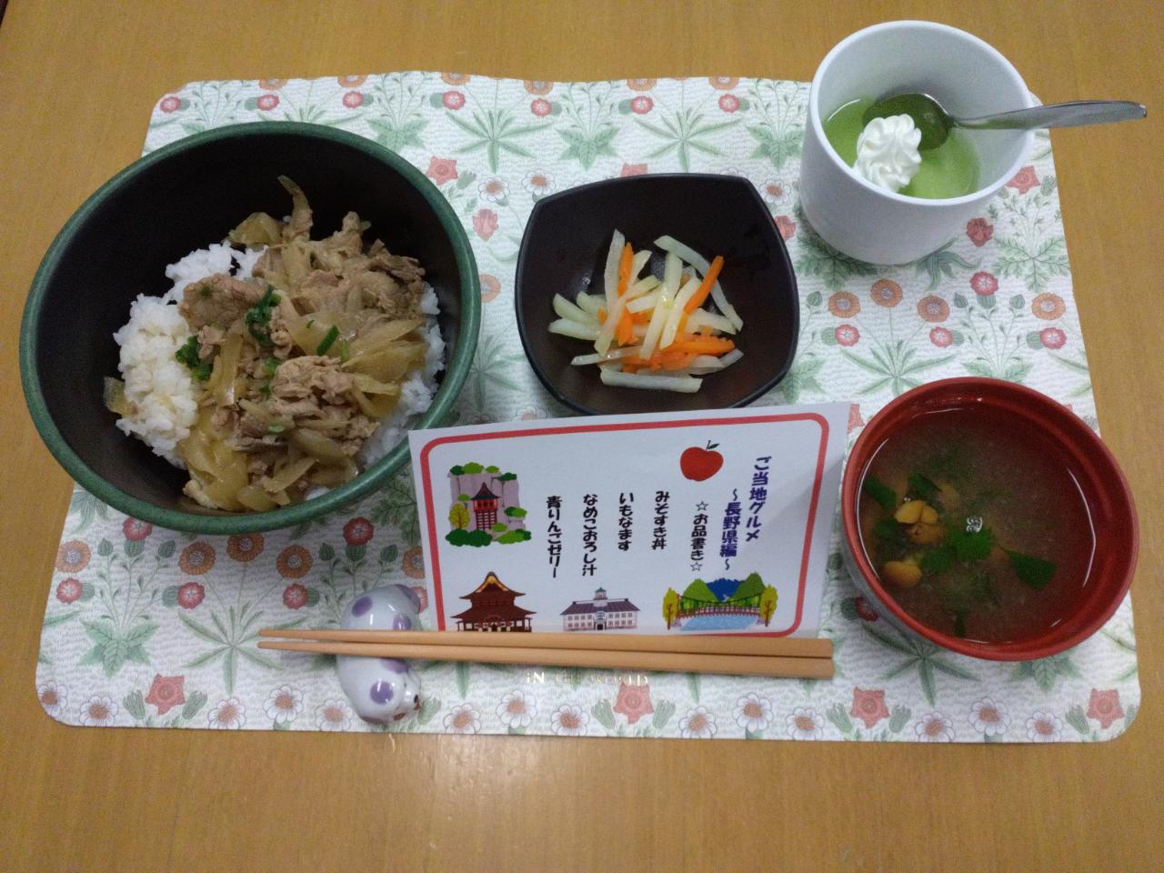「みそすき丼」は長野県須坂市の「信州須坂みそ料理乃會」が開発して、2007(平成19)年に誕生したご当地メニューです。みそすき丼は味噌で味付けしたすき焼きを丼に盛り付けたものです。