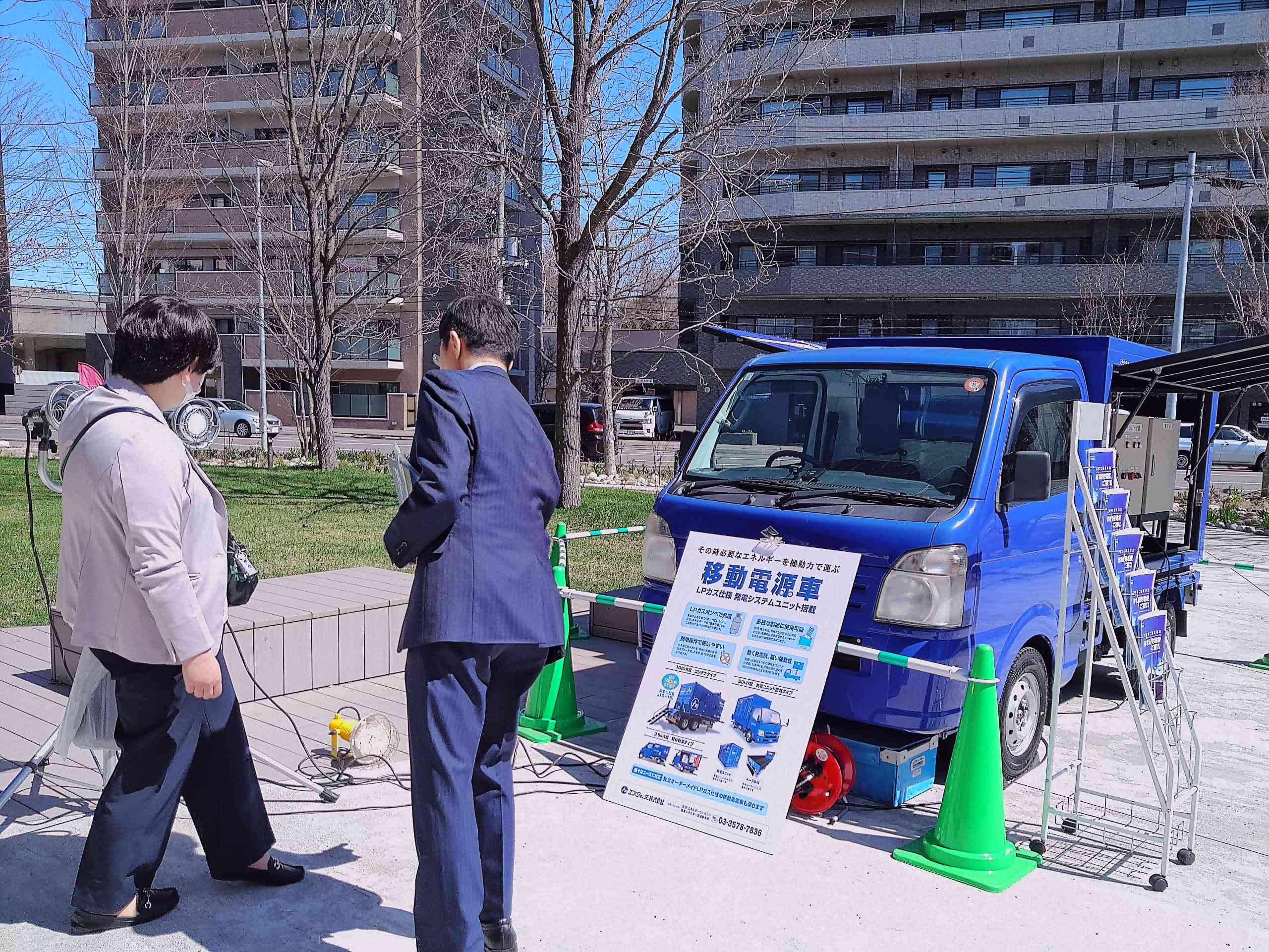 ソーラーパネルのポータブル電源などいろんな商品が展示されていました。