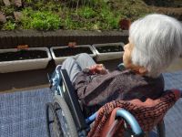 今日は入居者様と散歩をしようと外に出ましたが、風が冷たかったので、少し日光浴をして戻りました。