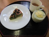 「黒豆と抹茶のチーズタルト」ペースト食の方には「抹茶プリン カスタードのせ」を召し上がって頂きました(*’▽’)