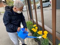 お花の手入れをしてスリッパも拭いて、いつでもお客様をお迎えする準備はバッチリです。