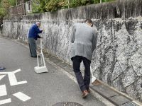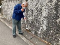 今日はクリーン作戦の日。はぴねの前の道路をみんなできれいにしました。