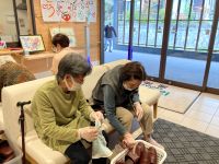 4月といえば春!!春を彩る「どこかで春が」「さくらさくら」などの曲を歌ったり、「青い山脈」「港十三番地」を鳴子を持ちながらご入居者様と一緒に鳴らしながら楽しんでいただきました(≧▽≦)!