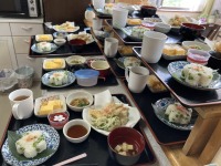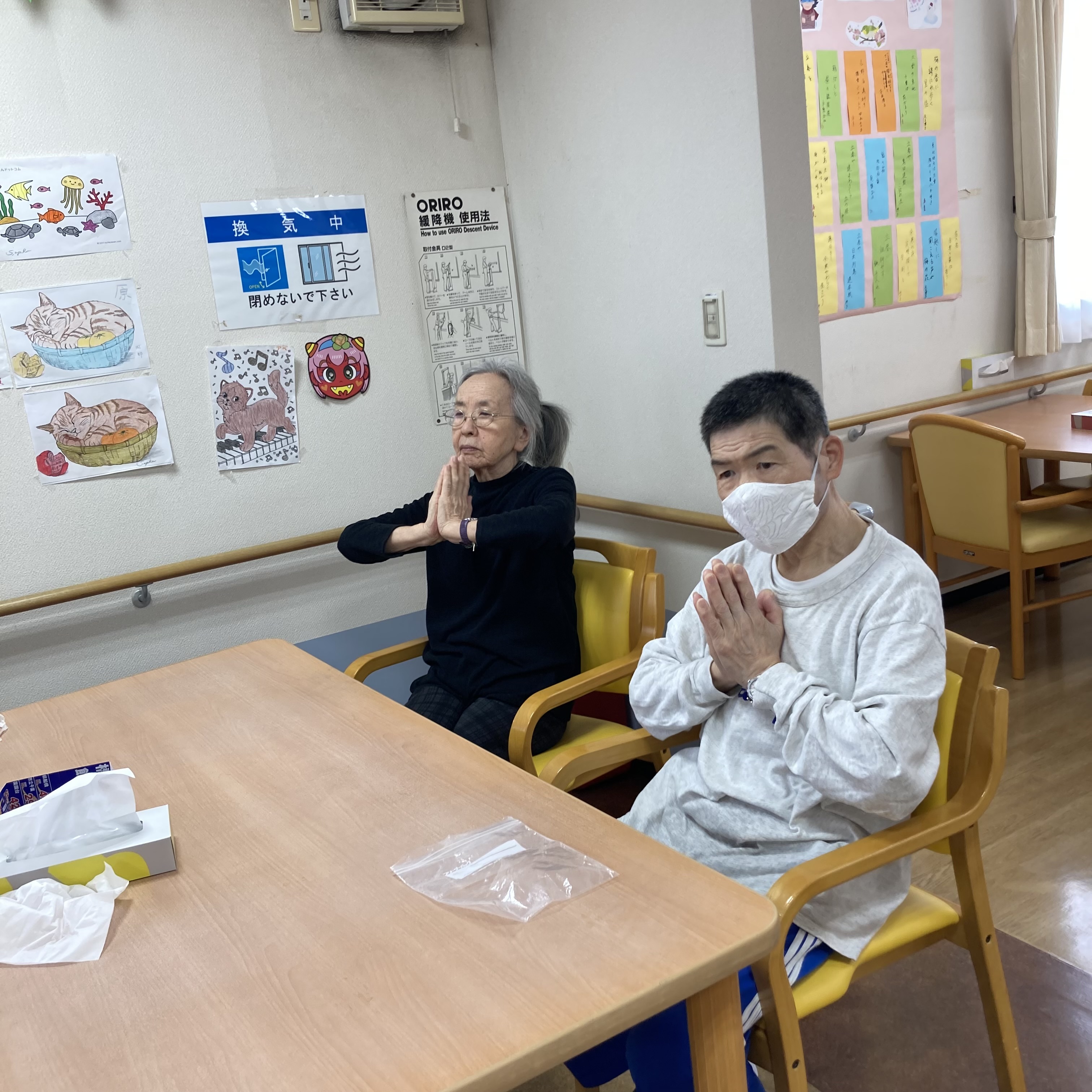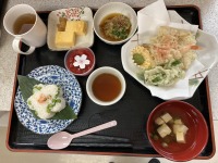今日は偶数月の行事食でした。献立の内容については、事前にシップヘルスケアフードから献立の内容についての掲示物が届き、フロアーに掲示させて頂いております。隔月の行事食を皆様心待ちにされています。今日の献立は、豆ごはん・春の天ぷら盛り合わせ・厚焼き玉子・焼き茄子・すまし汁・甘酒ゼリーと春らしいメニューでした(^_-)-☆