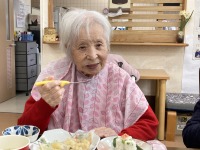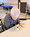 御膳を観て、「ワー美味しそう」食べ終って美味しかったと喜んでおられました。早くも次回の行事食を楽しみにされているようです。