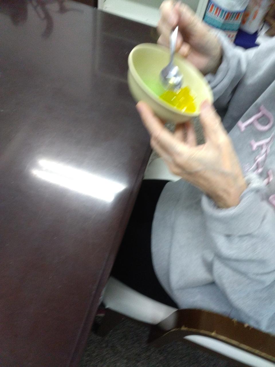 3時のおやつはゼリーで写真を撮ろうと思っていたらあっという間に召し上がられていました(^▽^)/