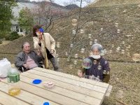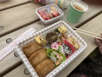 数日前の雨でほぼ桜は散ってしまいましたが、ほんの少し桜が残っておりその木の下で手作り弁当を食べました。