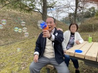 その後は1階恒例となっているシャボン玉の出番ですシャボン玉が自分の所まで来てテンションが上がる方、自分でシャボン玉を出すのを楽しまれる方、皆が楽しんでいるのを遠目で楽しそうに眺めている方様々おられました。