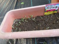 中庭にあるプランターに蒔いた「ミニひまわりとマリーゴールド」マリーゴールド(黄色)の芽が出てきました🌱小さな可愛い芽たちが並んでいます!「大きくな~れ!大きくな~れ!」綺麗に咲くのを楽しみにしてるよ🌼