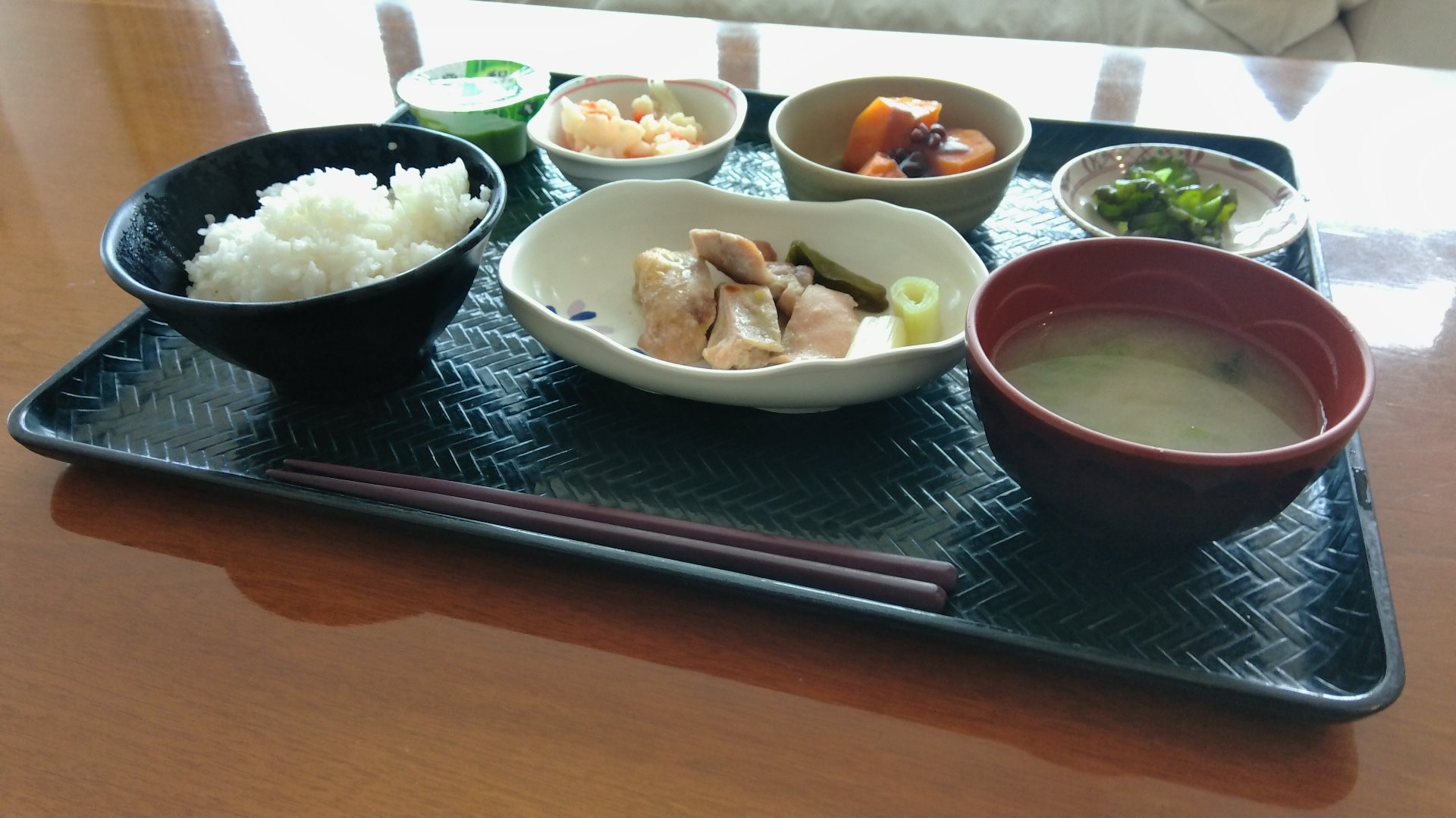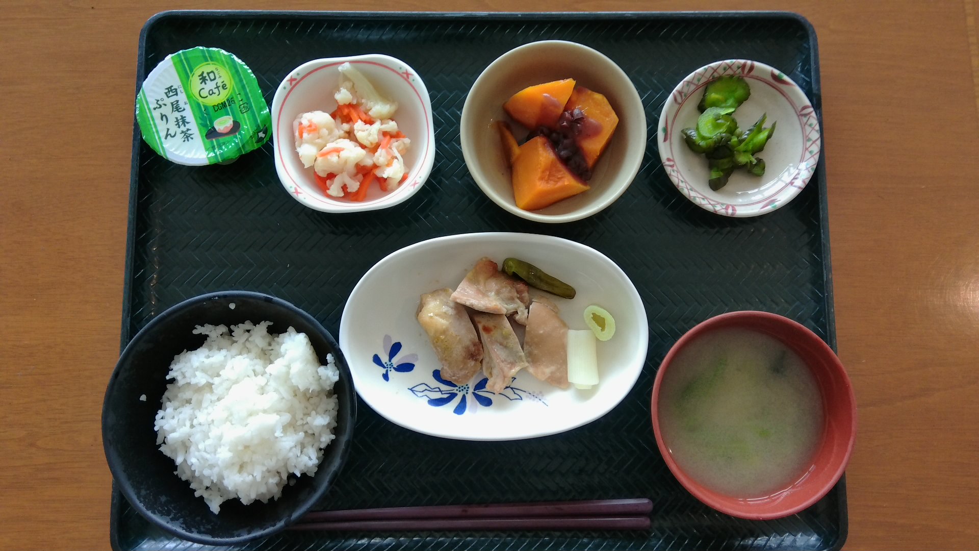 今日の昼食は鶏肉のゆず胡椒焼きです!