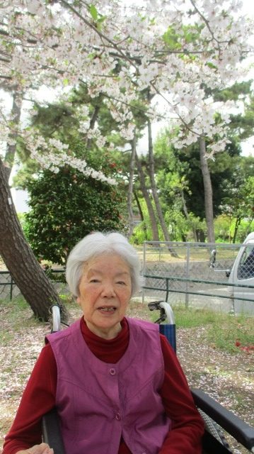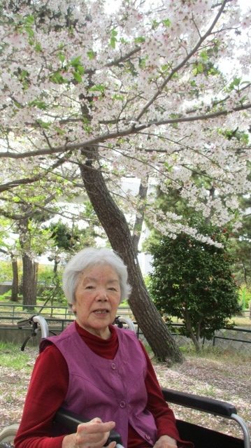 外の空気を吸い桜を見て大変喜ばれていました。お散歩は毎日行います。