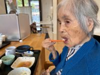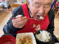 お昼ご飯の時「今日は豆ご飯だねぇ」との声が聞こえ、カメラを用意しましたが茶碗の豆ご飯はどんどん減っていきます。