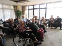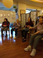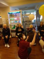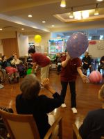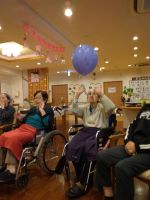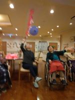 リズミカルな音楽の中を五つの🎈が今日も飛び交い「はぁ~い」「それ~」「きたぁ~」と掛け声も響き勿論、今回もハプニングだらけでしたが最後まで風船を追いかけ楽しまれていました。最後の水分補給が「しみる~、美味しい~」と笑顔の皆様でした( ´艸`)