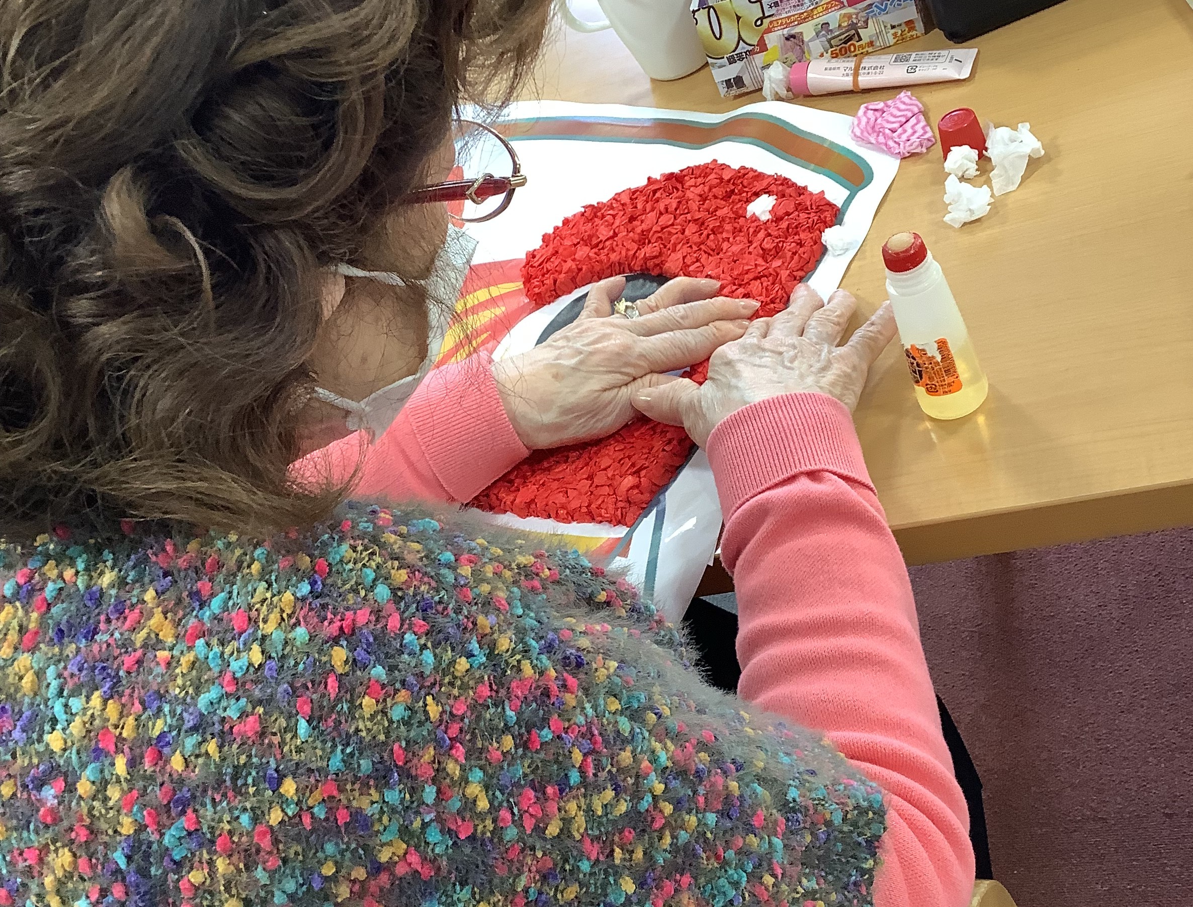 今日の午後は運動レクでボール移しゲームをしました。右の籠に入っているボールを左の籠に移す。全部移し終わったら左手で右の籠に入れる。簡単な動作ですがなかなか難しいようでした。今回はトーナメント戦で行い勝ち進んでいくうちに優勝者は更に早くなったようでした。とても良い運動になったと皆さん話されていましたのでまたこのゲームをしたいと思います(*^-^*)