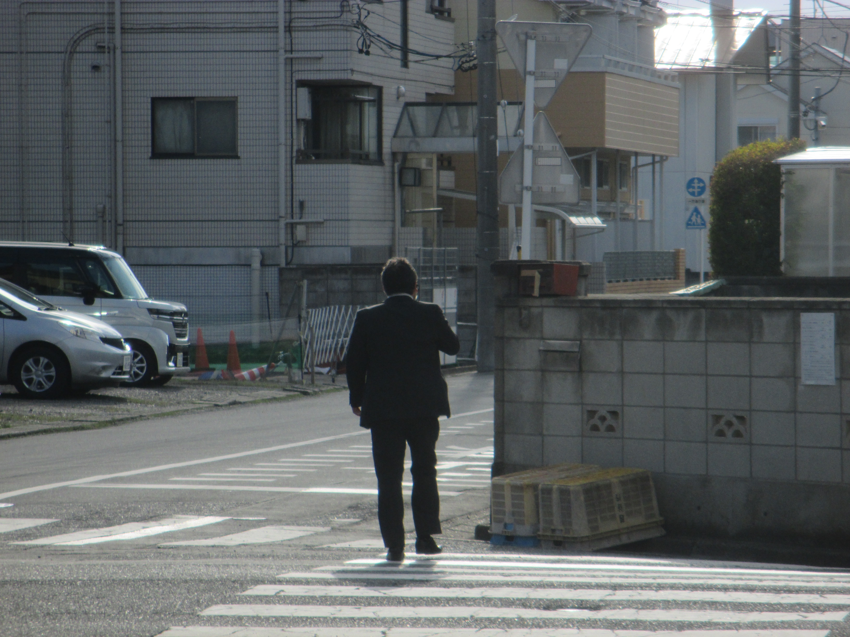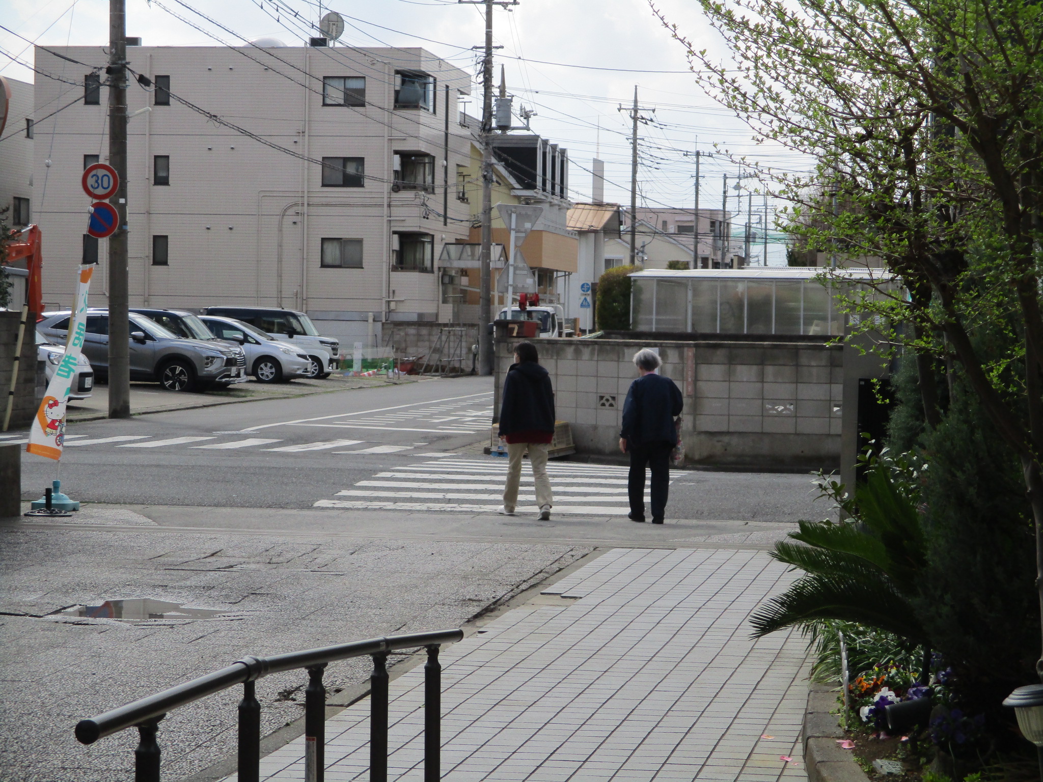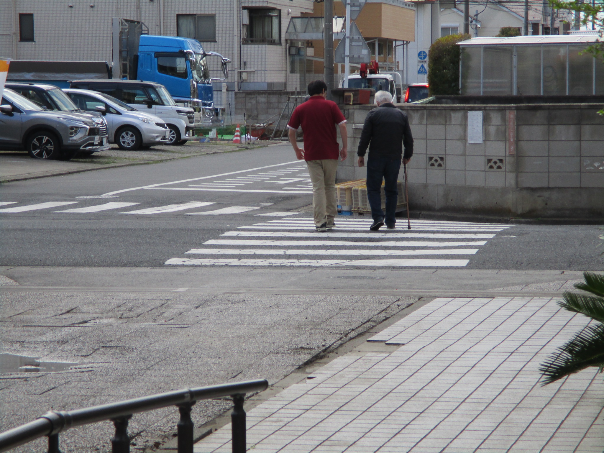 昼食後の室内でのリハビリを終えて散歩を兼ねた屋外歩行