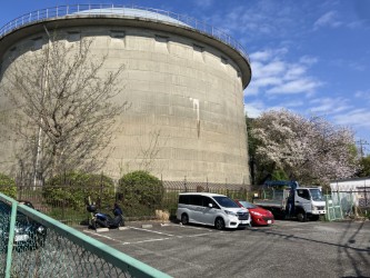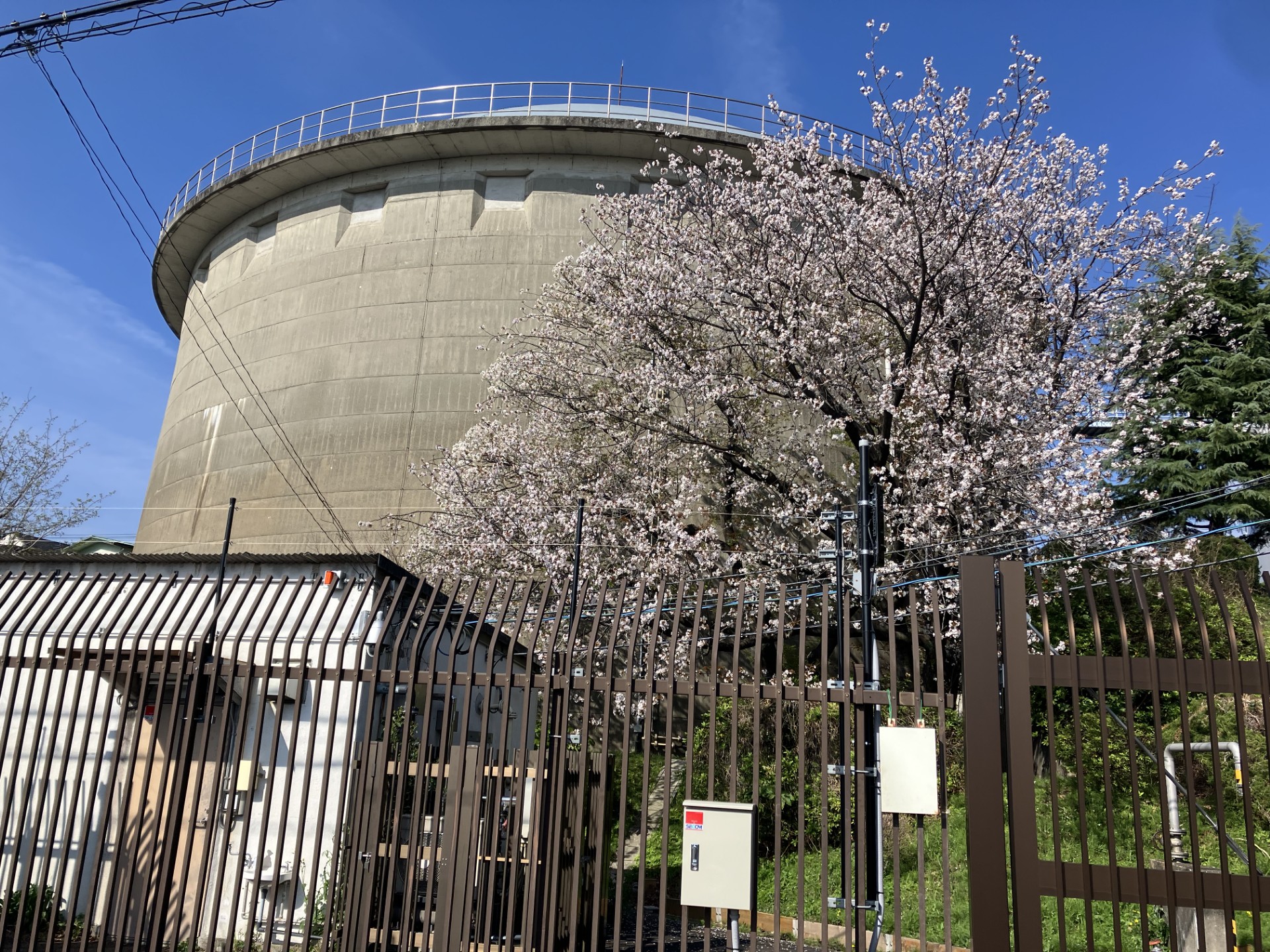 グリーンライフ仲池上の地元馬込の巨大建造物「馬込給水塔」の🌸満開の桜🌸です。