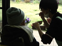 入居者様と一緒にシャボン玉をしているときの写真です。