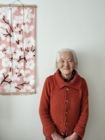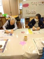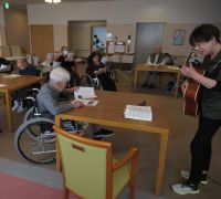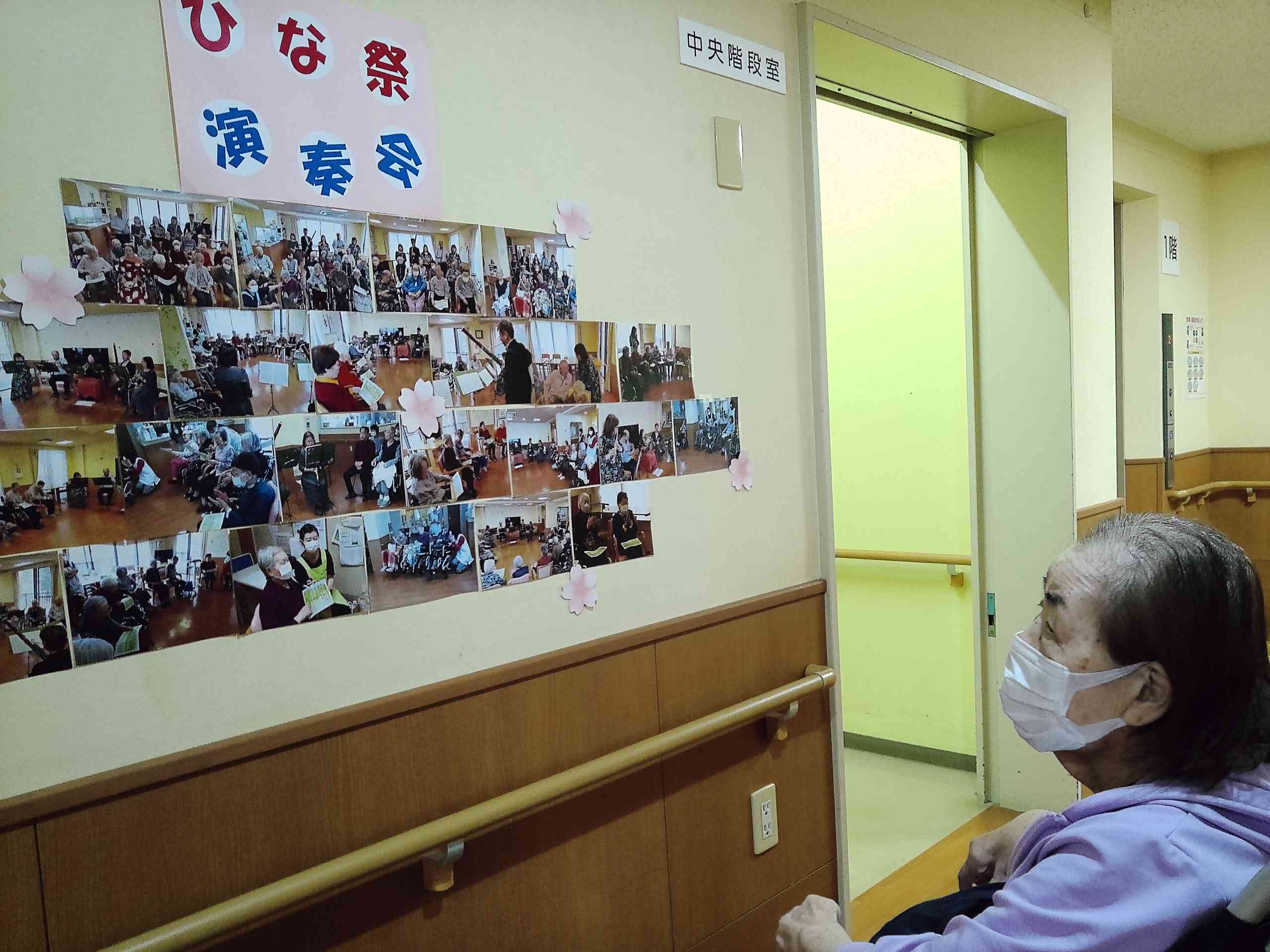 今月初めに行われた演奏会の写真を見に来られた入居者様。