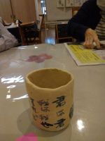 今回は湯飲み茶わん作りをしました。粘土をたたいてこねて力もいりますが皆様、真剣に取り組んでいました。最後の形は先生が整えてくださいました。焼き上がりが楽しみです。