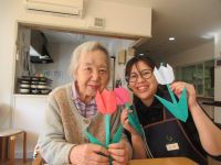体力自慢のご婦人4名が、他の入居者様達から熱い応援を受けて、色とりどりの花を沢山植えてくださいました💐