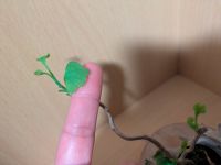 指先程の小さい葉ですがちゃんとイチョウの葉の形をしてます。日々少しずつ成長する銀杏ちゃん♪