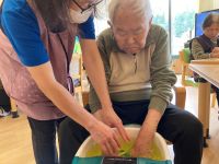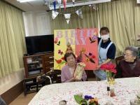 今日は3階フロアでは4月生まれの方の誕生日会を行いました。先日から手作りのお祝いプレートを本人様と一緒に作り楽しみにしておられました。