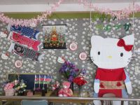 ホールで皆さんを見守っていてくれるキティちゃん♡春になり着替えと模様替え。端午の節句も近づいて来てるという事で、こいのぼりも飾ってみました。ホールにはたくさんのこいのぼりたちが泳いでいます🎏後日レクで「こいのぼり作り」も考えています。また、ブログでご報告したいと思います!