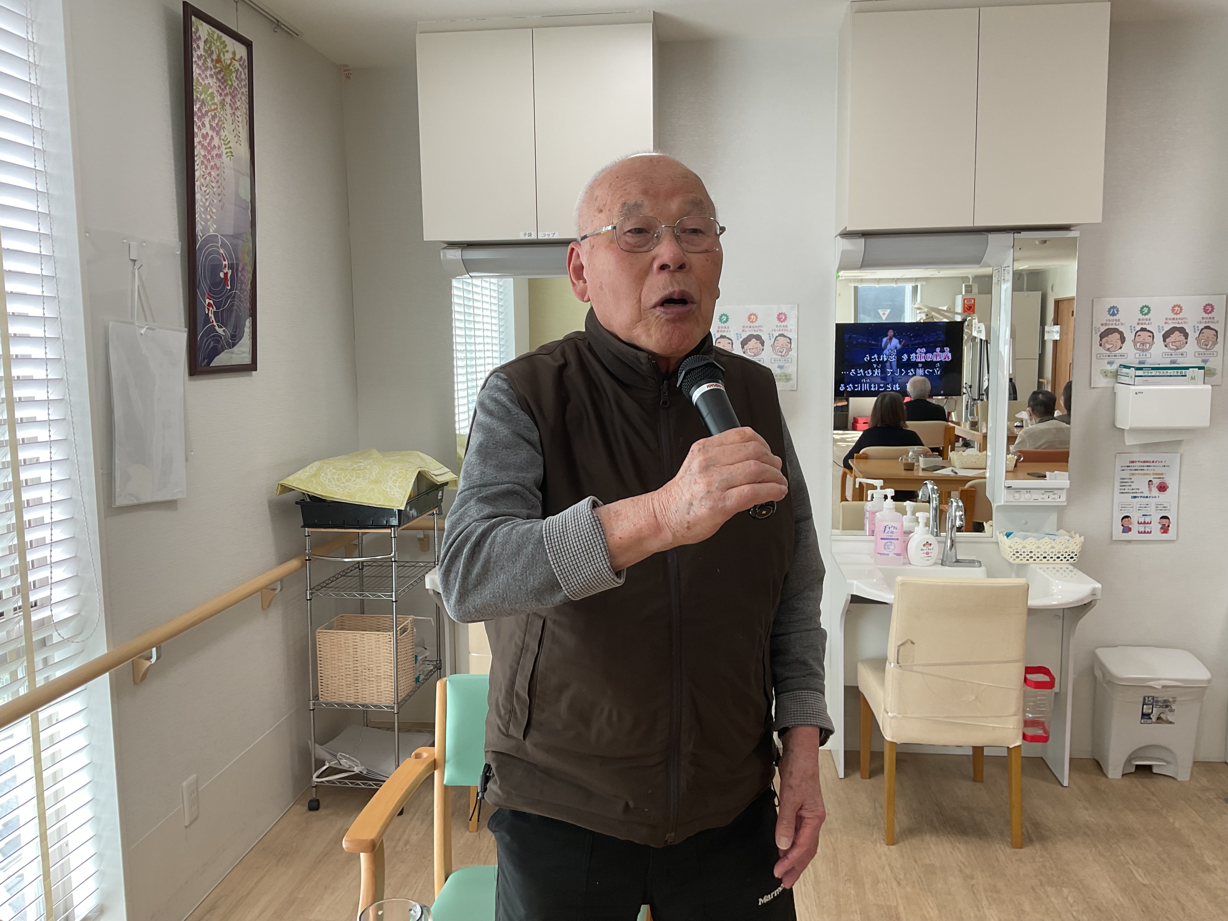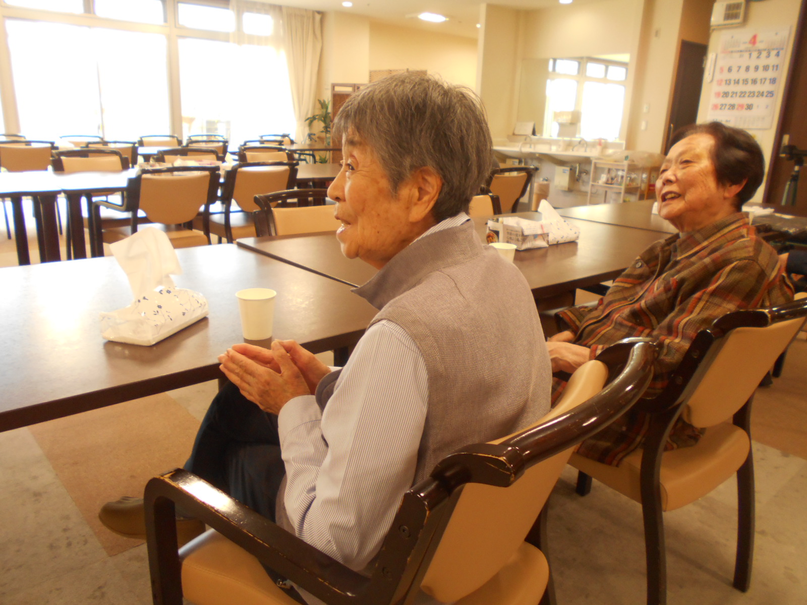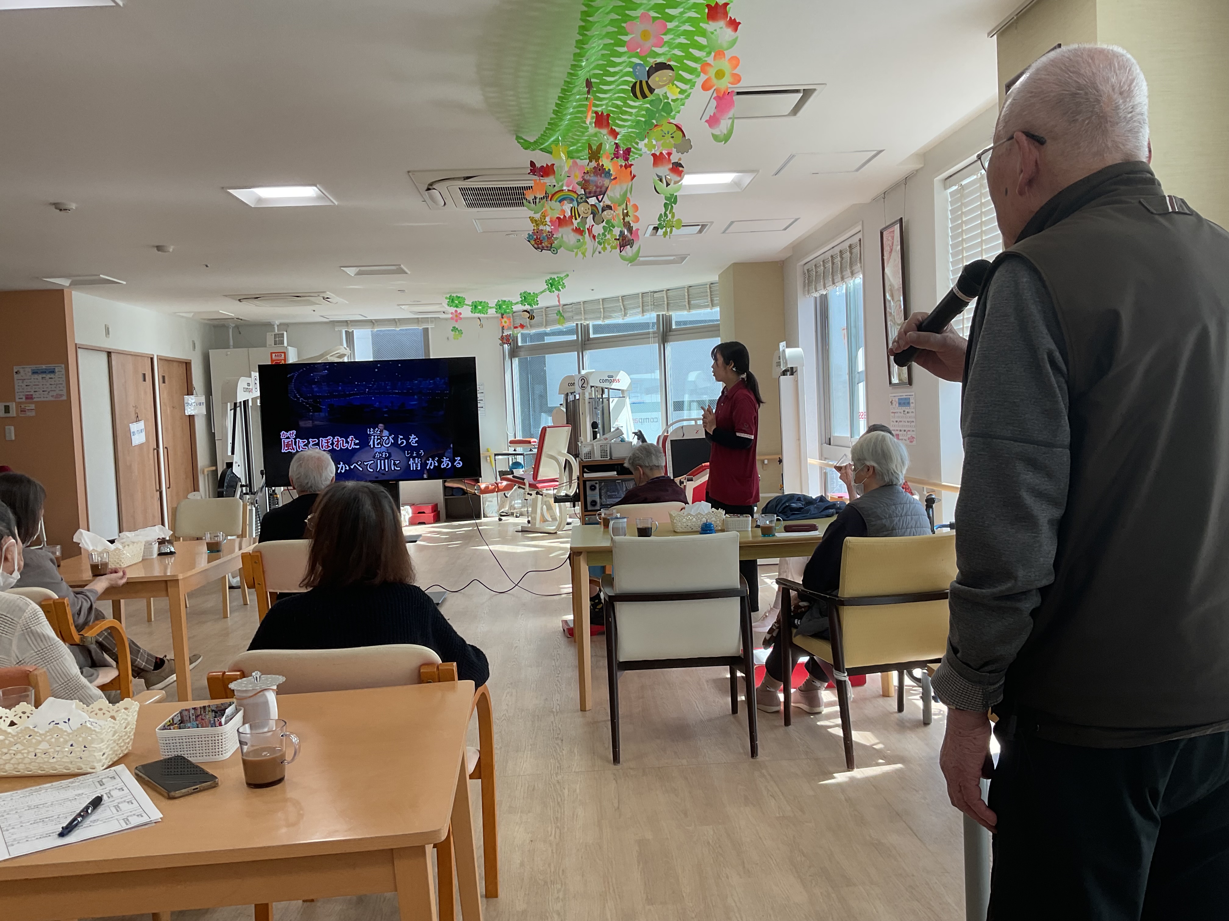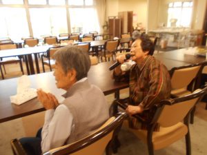 他入居者様は手拍子され、口ずさむ方もおられました。普段歌うことのないY様も