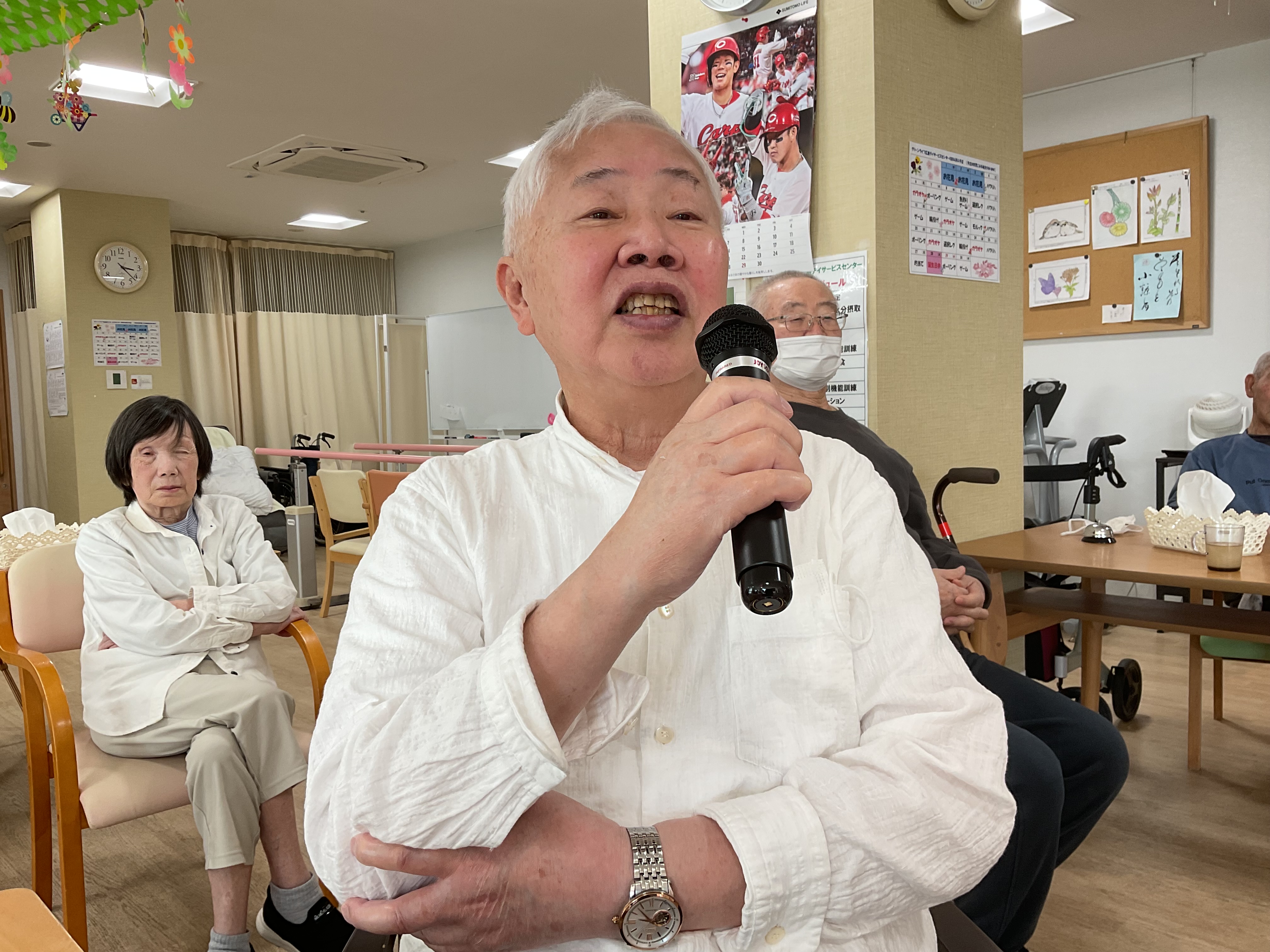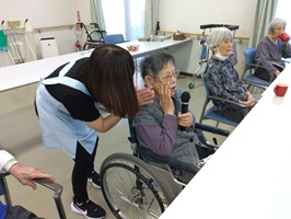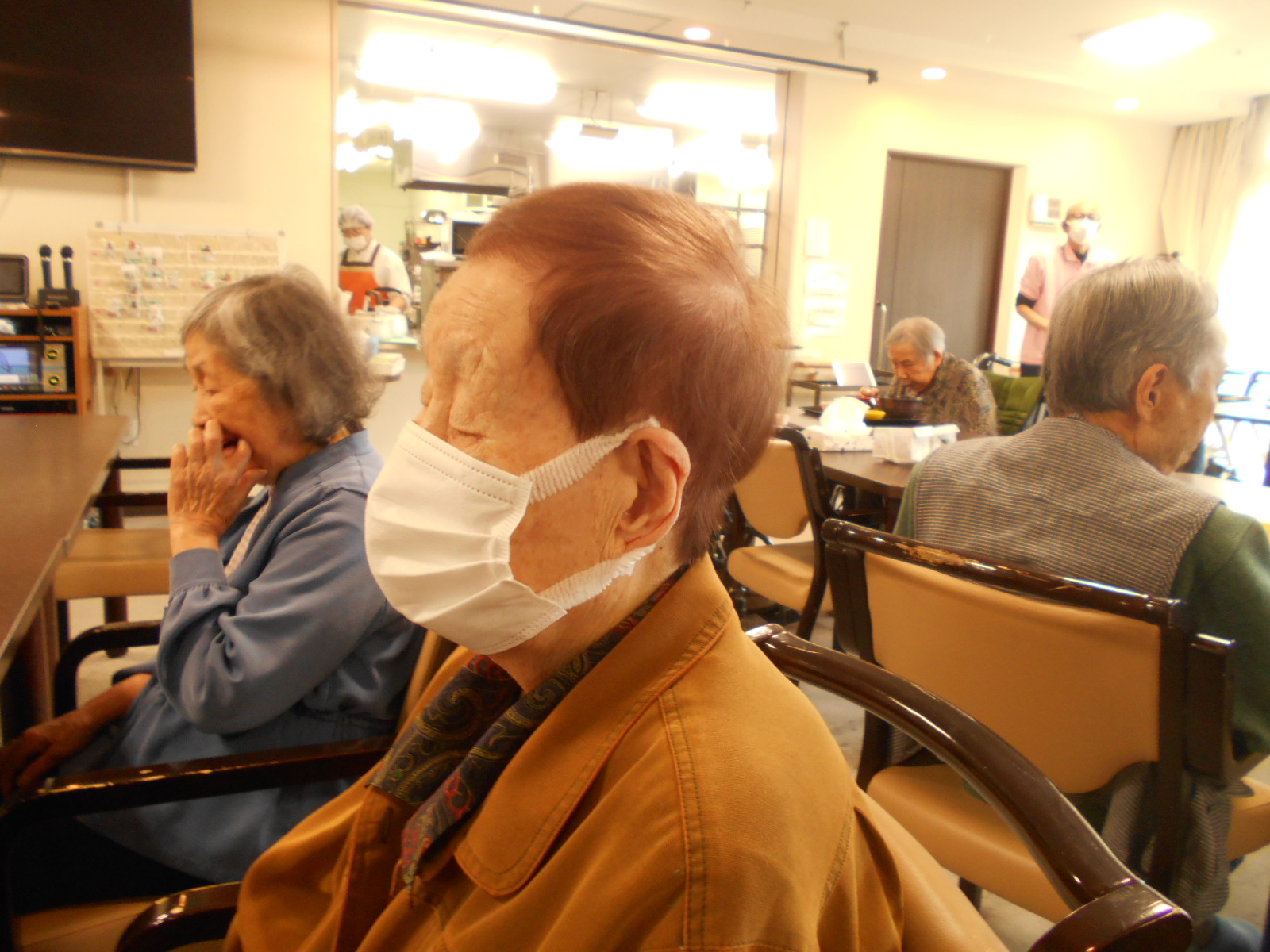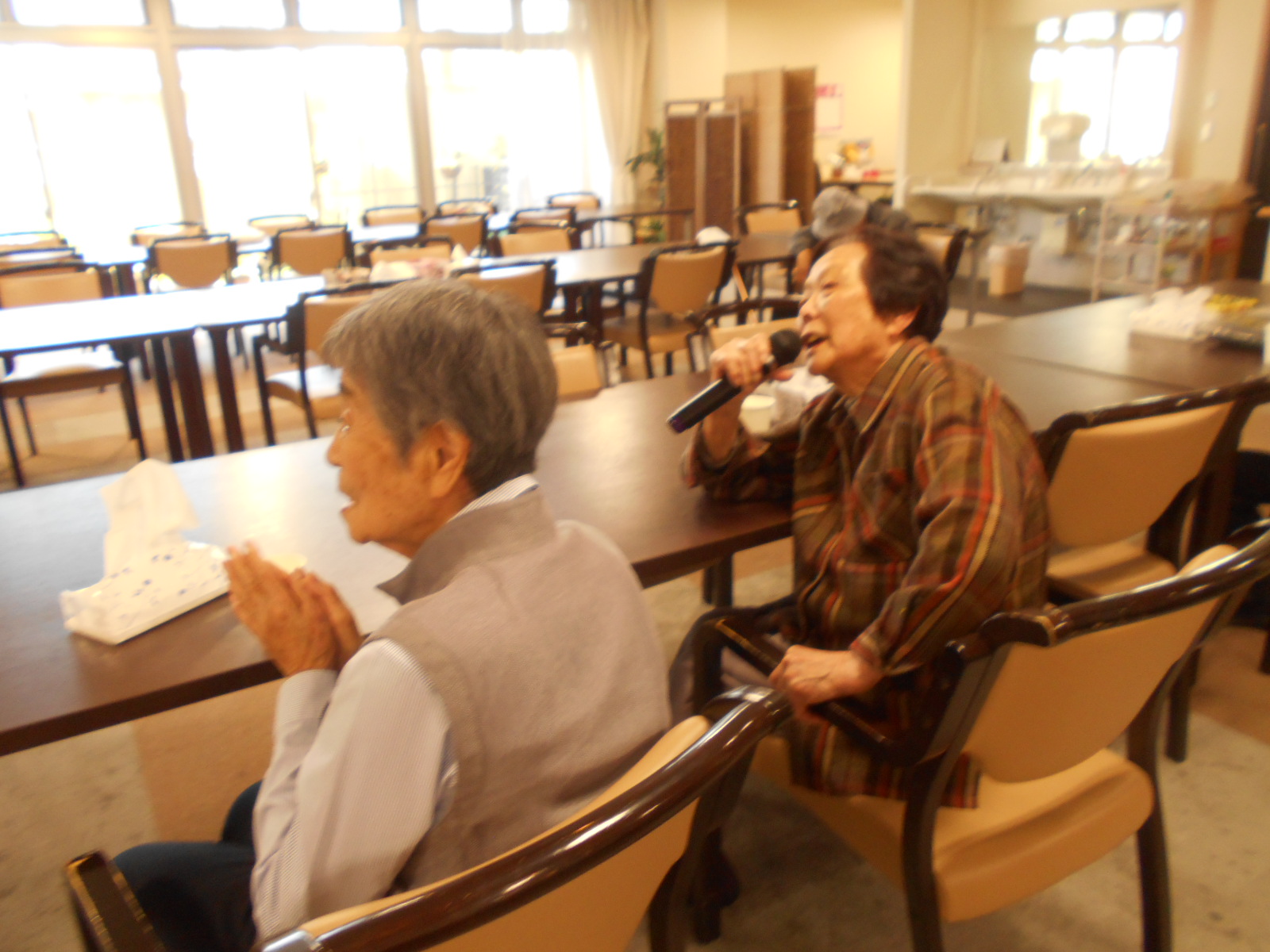 他入居者様は手拍子され、口ずさむ方もおられました。普段歌うことのないY様も