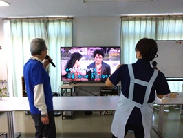 午後からは、カラオケを楽しまれています。マイクを持つと、どの歌も歌えるT様。