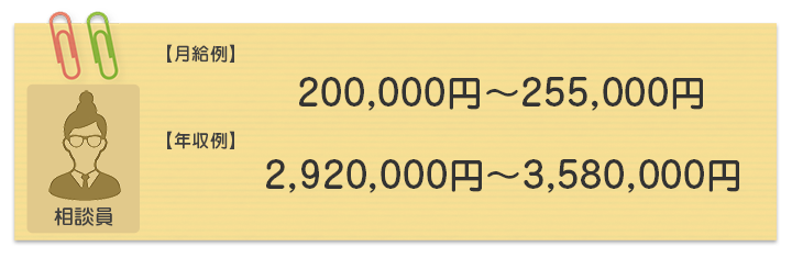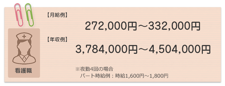 各職種ごとの月収と年収の例です。資格・経験により、給与面などは応相談いたします。